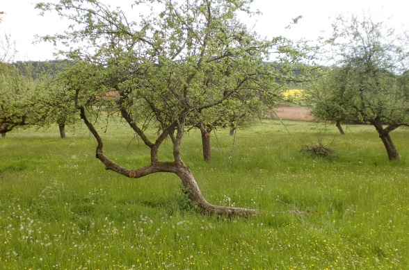 Hier kann man die Auswirkungen einer Wasserader sehr gut erkennen. Der Baum hier weicht durch Schiefwuchs einer Wasserader aus.